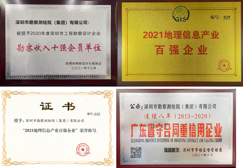 2021年,深勘繼續(xù)堅持“守法誠信、精心精品、環(huán)保安康、持續(xù)改進(jìn)”的管理方針,堅持品質(zhì)鑄就品牌,以優(yōu)質(zhì)高效的服務(wù),為客戶、為社會創(chuàng)造價值。在這一年里,獲得深圳市工信局“數(shù)字經(jīng)濟(jì)扶持計劃產(chǎn)業(yè)服務(wù)體系扶持項目”認(rèn)定、“福田區(qū)高端服務(wù)業(yè)綜合貢獻(xiàn)獎”、獲批成立“深圳市博士后創(chuàng)新實踐基地”、新增林業(yè)調(diào)查規(guī)劃設(shè)計資質(zhì);連續(xù)第六年被評為中國地理信息產(chǎn)業(yè)百強(qiáng)企業(yè),連續(xù)八年獲“廣東省守合同重信用企業(yè)”稱號。在廣東省第二屆職業(yè)技能大賽中榮獲住房城鄉(xiāng)建設(shè)行業(yè)土工試驗員競賽獲得團(tuán)體第二名、兩人獲得個人總排名前六的優(yōu)異成績。2021年度集團(tuán)榮獲優(yōu)秀工程獎50項,獲得發(fā)明專利2項,實用新型專利3項,軟件著作權(quán)16項,發(fā)表學(xué)術(shù)論文52篇。作為主編單位,成功組織召開深圳市《市政工程勘察標(biāo)準(zhǔn)》初稿討論會及征求意見稿討論會,作為參編單位發(fā)布《數(shù)字航天攝影測量 控制測量規(guī)范》(GB/T 40766-2021)、《數(shù)字航天攝影測量 測圖規(guī)范》(GB/T 40527-2021)、《基于BIM的運維系統(tǒng)建設(shè)及交付規(guī)范》(T/CSPSTC 66-2021)、《基于北斗的城市地質(zhì)災(zāi)害和基礎(chǔ)設(shè)施結(jié)構(gòu)安全監(jiān)測技術(shù)規(guī)范》(T/CSPSTC 67-2021)、《工程測量標(biāo)準(zhǔn)》(GB50026-2020)等五項國標(biāo)及團(tuán)體標(biāo)準(zhǔn)。深勘集團(tuán)以品質(zhì)立企,以科技、創(chuàng)新驅(qū)動企業(yè)高質(zhì)量發(fā)展,碩果累累。